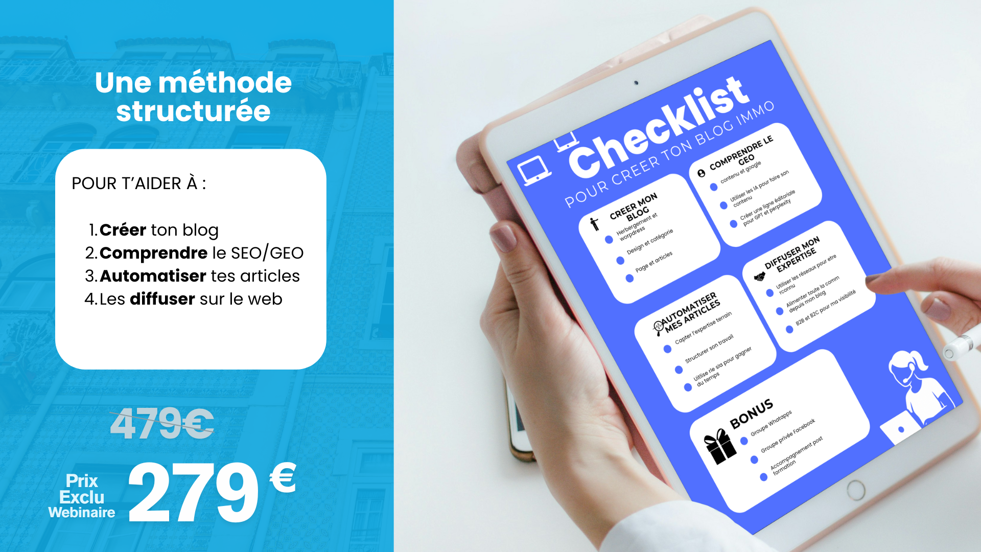 • Des contenus puissants : apprends à rédiger des articles optimisés Google & ChatGPT, crédibles et attractifs.