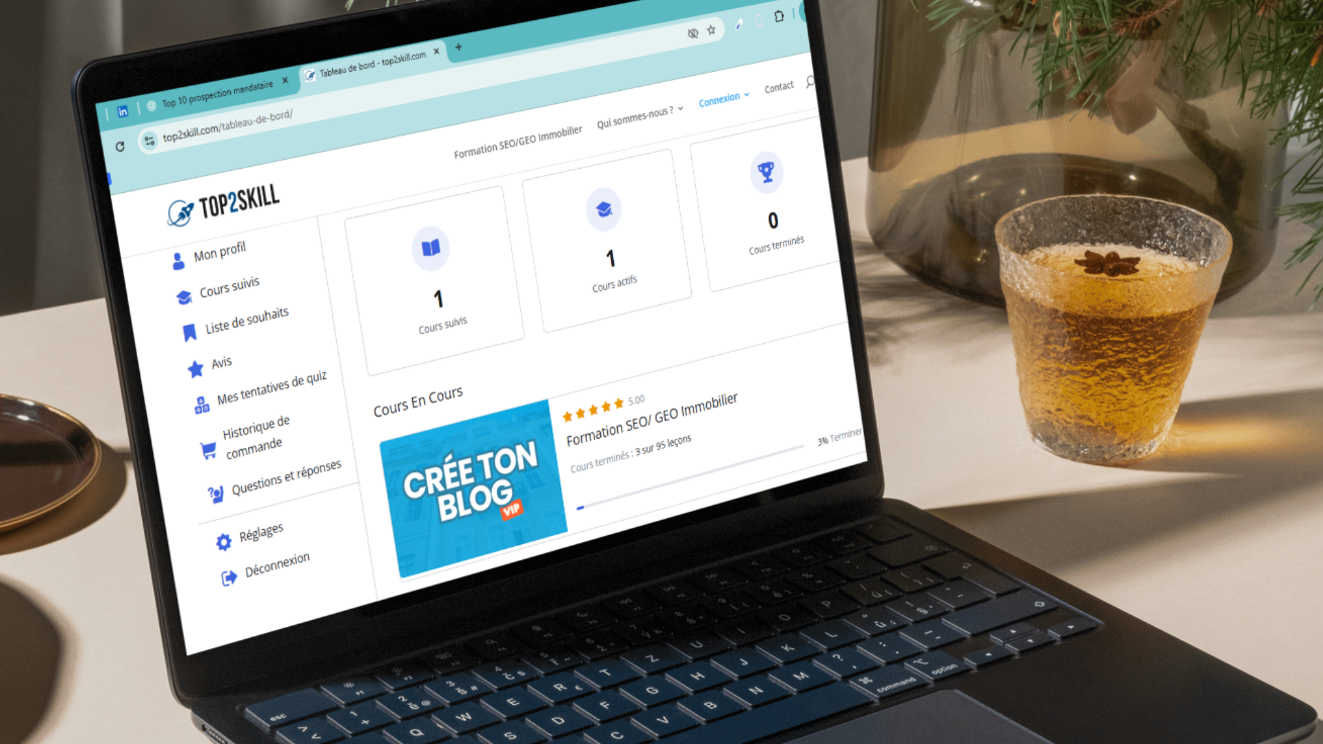 Notre formation Top2Skill t’apprend à créer ton propre blog professionnel optimisé SEO/IA, un véritable outil de prospection digitale qui travaille pour toi 24h/24.